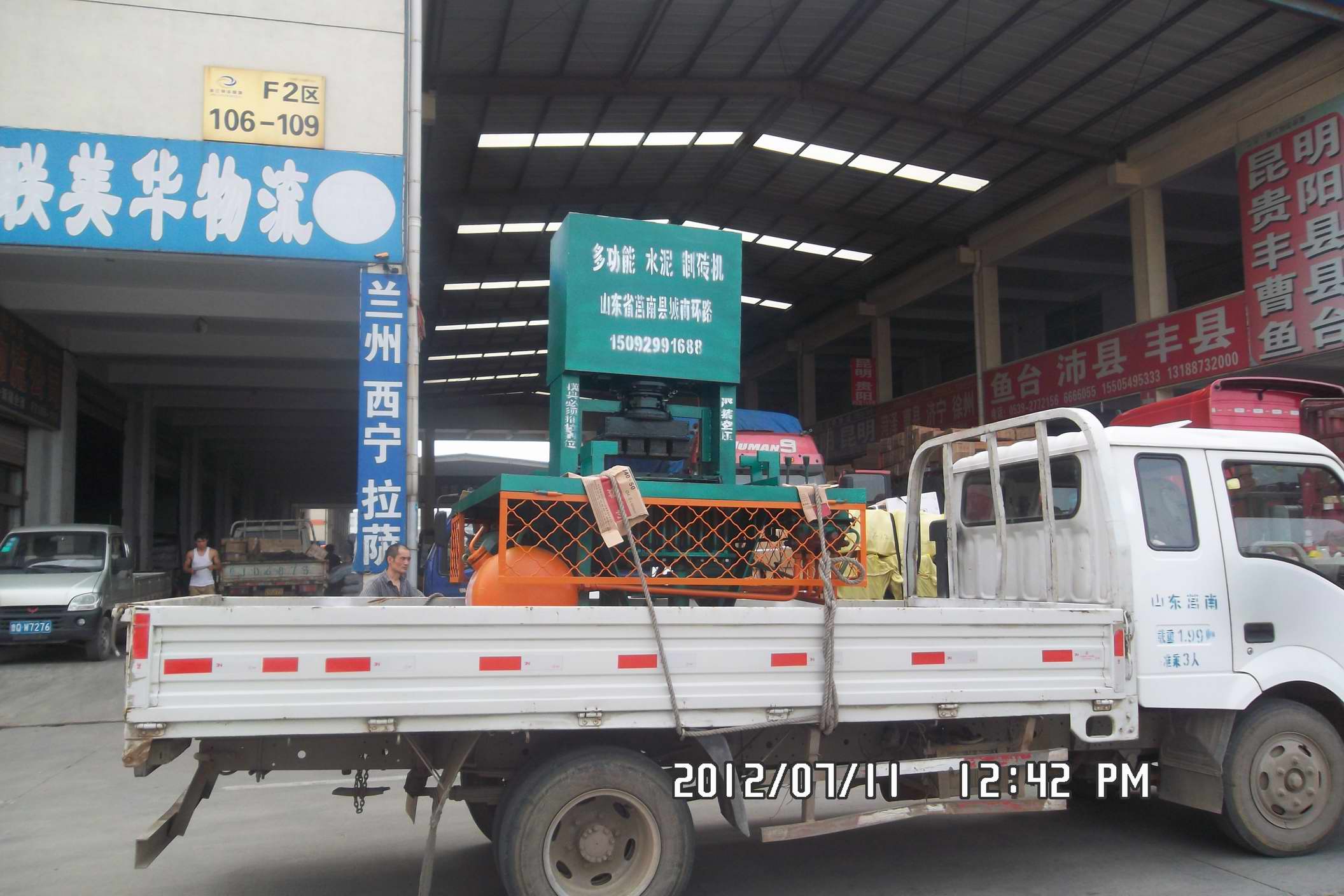 花磚機,山東彩磚機,水泥墊塊機,支撐墊塊機,墊塊機設備,護坡磚機,透水磚機,莒南縣眾鑫機械有限公司注冊商標:華工磚機!